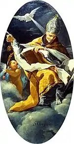 | (картина Гойи) исп. San Gregorio | ![]() | ок. 1772 | Óleo sobre muro | 250 x 200 | Gassier 33, GW 36, G 30, De Salas 32, MM 33 | Pechina, Santuario de la Virgen de la Fuente (Muel, España) | [1][25] |