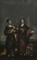 | (картина Гойи) исп. Santa Bárbara | ![]() | ок. 1773 | Холст, масло | 97,2 x 78,5 | Gassier 101, GW 162, G 102 / 96, De Salas 104, DeA 56, MM 56 | Прадо (Мадрид, Испания) | [67][68] |