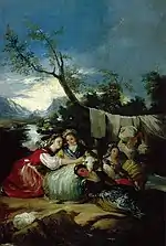 | (картина Гойи) исп. Merienda campestre | ![]() | 1776 | Холст, масло | 271 x 295 | Gassier 70, GW 70, G 62, De Salas 54, DeA 68 | Прадо (Мадрид, Испания) | [1][52] |