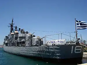 Афины, Фалер | Эсминец | 1942 | Участвовал во Второй мировой войне, в 1973 году на корабле произошел мятеж против диктатуры «черных полковников» | ![]() | |