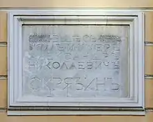 | Брюхоненко C. С. (1890—1960) Учёный | Проспект Мира, 51, стр. 1 | Доска из серого гранита | ск. Л. А. Соколов, Л. Н. Маковский | |||