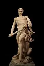 Керкопы | Согласно Суде, это сыновья Мемнониды Пассал и Акмон. По Ксенагору, это сыновья Феи и Океана. | Два брата-карлика, уродливые и хитроумные. Занимались разбоем и грабежом, обманывая и убивая путников. Несмотря на предостережение матери, пытались обмануть и Геракла, но были им побеждены и подвешены вверх ногами на бревне. За обман Зевса были наказаны: согласно разным версиям, были превращены в камень, или желтых обезьян, или, по Овидию, лишены дара речи. |