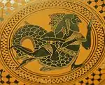 Дракайны | Змей (дракон) женского пола, часто с человеческим чертами. К дракайнам относились Кампа, Кето, Дельфина, Ехидна, Скилла, Ламия, Пэна и Пифон (когда описывался как существо женского пола). Обычно в мифах дракайн убивали боги или полубоги. Зевс убил Дельфину и Кампу, Аполлон — Пифона и Аргус — Ехидну. | |