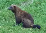 (Linnaeus, 1758)[5] | Росомаха — вид куньих отряда хищных. Один из самых крупных современных представителей куньих. Длина с хвостом составляет 90—110 см, вес — до 30 кг[68][69]. Распространена в тайге, в лесотундре и отчасти в тундре Евразии и Северной Америки[68][70]. В Мурманской области росомахи встречаются повсеместно, по большей части рядом с местами обитания северных оленей[5]. Промысел росомахи в области был запрещён в 1986 году[5]. В первой половине 1990-х численность вида составляла около 100 экземпляров, а с начала XXI века стала увеличиваться, особенно в районах Лапландского заповедника, Ловозерского и Терских районов[5]. | ![]() | ||||