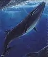 | Северный финвал — номинативный подвид финвала — вида полосатиковых отряда китопарнокопытных. Второе по величине после синего кита животное планеты[37]. Имеет длину тела до 24—26 метров, вес — до 60—80 тонн[37][38]. Обитает по всему мировому океану, хотя в экваториально-тропическом поясе довольно редок[39][40]. В прибрежных водах Мурманской области встречается в летний период в Баренцевом море и, реже, в Белом море[40]. Общая численность финвала в северном полушарии оценивается в 40 000 экземпляров[37], из которых в Северной Атлантике находится до 18 000 животных[5]. | ![]() | [м 15] | ||||