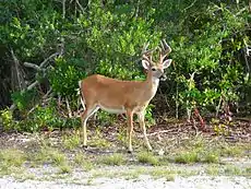 - Белохвостый олень относится к наиболее распространённым копытным Северной Америки. Этот вид является наиболее важным для охоты. Общая численность оленей в США сейчас составляет около 14 миллионов особей, хотя до появления европейцев, она составляла 50 млн. Численность популяции во Флориде составляет 700 тыс. особей[37].