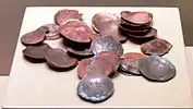 | Катания | около 582 — 629[15][25] | CAT | ![]() Монета в 40 нуммий из Катании, аверс | |
