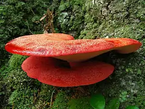 | Базидиальные грибы — Basidiomycota | Фистулиновидные — Fistulinaceae | Печеночница | Fistulina hepatica | 2 | Вид занесен в Красную книгу Балтийского региона. | Сохранение участков старовозрастных лесов. Мониторинг состояния известных популяций, поиск других местообитаний и организация их охраны. | ![]() |