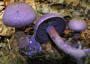 | Базидиальные грибы — Basidiomycota | Паутинниковые — Cortinariaceae | Паутинник фиолетовый | Cortinarius violaceus | 3 | Вид внесен в Красную книгу России. | Сохранение в естественном состоянии лесных экосистем. Необходимо пропагандировать вид как редкий и нуждающийся в охране. | ![]() |