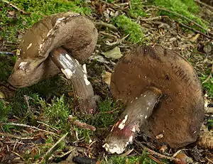 | Базидиальные грибы — Basidiomycota | Шишкогрибовые — Strobilomycetaceae | Порфировик ложноберезковый | Porphyrellus pseudoscaber | 2 | Внесен в Красную книгу России. | Контроль за состоянием известных популяций и выявление новых мест обитания. | ![]() |