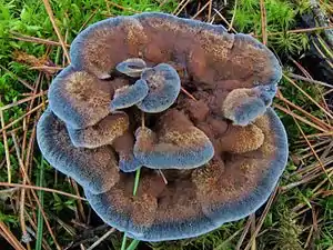 | Базидиальные грибы — Basidiomycota | Банкеровые — Bankeraceae | Ежовик голубой | Hydnellum caeruleum | 3 | Специальные меры охраны на территории области никогда не предпринимались. | Сохранение участков старовозрастных лесов. Мониторинг состояния известных популяций, поиск других местообитаний и организация их охраны. | ![]() |