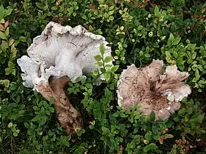 | Базидиальные грибы — Basidiomycota | Банкеровые — Bankeraceae | Ежовик зеленоножковый | Sarcodon glaucopus | 3 | Специальные меры охраны на территории области никогда не предпринимались. | Сохранение участков старовозрастных лесов. Мониторинг состояния известных популяций, поиск других местообитаний и организация их охраны. | ![]() |