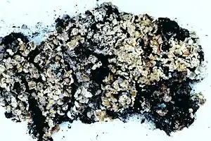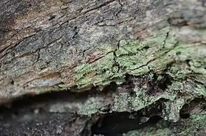 | Лишайники — Lichenes | Кониоцибовые — Coniocybaceae | Хенотека зеленоватая | Chaenotheca chlorella | 3 | Специальные меры не применялись. Как компонент экосистем формально охраняется на территории национального парка «Куршская коса». | Разработка и реализация специальных мер по сохранению редких видов лишайников в рамках охранного режима на территории национального парка «Куршская коса». Ограничение рекреационной нагрузки в местах произрастания вида. Поиски новых местообитаний. | ![]() |