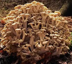 | Базидиальные грибы — Basidiomycota | Мерипиловидные — Meripilaceae | Грифола курчавая | Grifola frondosa | 2 | Вид внесен в Красную книгу России. | Сохранение участков старовозрастных лесов. Мониторинг состояния известных популяций, поиск других местообитаний и организация их охраны. | ![]() |