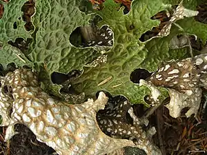 | Лишайники — Lichenes | Лобариевые — Lobariaceae | Лобария легочная | Lobaria pulmonaria | 1 | Вид занесен в Красную книгу России. | Поиск новых местообитаний вида. Проведение специальных режимных наблюдений за состоянием известных популяций. Создание искусственных ценопопуляций вида в подходящих местообитаниях. | ![]() |