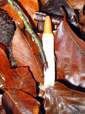| Базидиальные грибы — Basidiomycota | Веселковые — Phallaceae | Мутинус собачий | Mutinus caninus | 3 | Вид внесен в Красную книгу России. | Контроль состояния известных популяций и выявление новых мест обитания. | ![]() |
