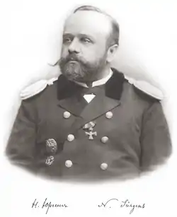 1885 | ![]() Русский морской офицер, гидрограф. В 1882—1883 гг. был начальником русской станции на острове Сагастырь (Усть-Ленская полярная станция) и эта его деятельность была отмечена медалью. |