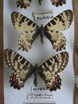 Исчезающий вид, эндемик южного Закавказья. Встречается на южных склонах Зангезаурского и Даралагезского хребтов. Крайне редко встречающийся вид. Причины изменения численности: чрезмерный сбор местным населением употребляемого в пищу прангоса, являющегося кормовым растением гусениц; паразитирование на гусеницах ихневмонид. | ||||