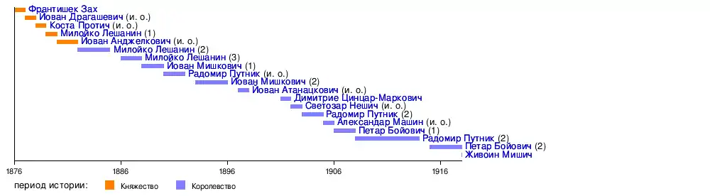 1847—1917 | 1890—1892 (и. о.), 1903—1905, 1908—1914 | Родился в Крагуеваце в 1847 г. В 1861 г. поступил в Военную академию. В 1866 г. ему было присвоено звание подпоручика, в 1905 — генерала, а в 1912 — воеводы. Стал первым офицером сербской армии, получившем этот чин. Несколько раз возглавлял Генеральный штаб и Военное министерство. Был профессором Военной академии. Автор ряда работ по военной теории. Скончался в Ницце в 1917 г. | [15][2][16] |