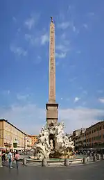 В Риме находятся тринадцать обелисков. Из них десять были привезены из Египта римскими императорами, три псевдоегипетских обелиска были изготовлены в античном Риме. Первые обелиски были привезены в 10 г. до н. э. императором Августом. Идея использования обелисков в качестве градостроительных элементов нового христианского Рима принадлежит папе Сиксту V. Именно он с 1585 года предпринял грандиозные работы по перестройке и благоустройству города, прокладывая новые улицы и расширяя площади, оформляя их дворцовыми фасадами и акцентируя городские центры с помощью обелисков. Вертикали римских обелисков и в последующем отвечали идеям стиля барокко, одна из которых — организация широкого пространства и глубоких перспектив. До настоящего времени римские обелиски отмечают основные точки городского пространства. Они видны издалека и, в большинстве случаев, указывают на расположение главных христианских базилик Рима.