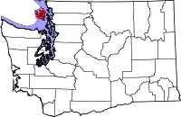 | Округ Китсап | 035 | Порт-Орчард | 1857 | King and Jefferson Counties | Китсап — предводитель племени суквомиши | 251 133 | 1026 км² | ![]() |