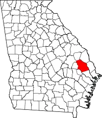 | Округ Дженкинс | 165 | Миллен | 1905 | округа Буллок, Берк, Emanuel, и Скривен | Charles Jones Jenkins (1805–1883), governor of Georgia, who was the author of the famous Georgia Platform of 1850. | 8575 | 906 км² | ![]() |