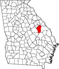 | Округ Джонсон | 167 | Райтсвилл | 1858 | округа Emanuel, Лоренс и Вашингтон | Herschel Vespasian Johnson (1812–1880), U.S. Senator and Georgia governor. | 8560 | 787 км² | ![]() |