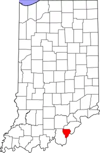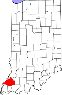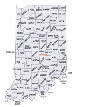 | Гибсон (Gibson County) | 18051 | Принстон | 1 апреля 1813 | В честь губернатора территории Индианы Джона Гибсона | 33 503 | 1262,6 | 10,2 | ![]() |