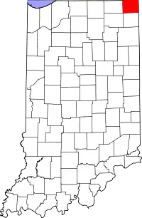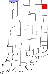 | Блэкфорд (Blackford County) | 18009 | Хартфорд-Сити | 2 апреля 1838 | В честь судьи Исаака Блэкфорда, спикера Палаты представителей Индианы и председателя Верховного суда Индианы | 12 766 | 427,6 | 11,5 | ![]() |