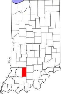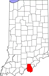 | Дженнингс (Jennings County) | 18079 | Вернон | 27 декабря 1816 | В честь губернатора Индианы Джонатана Дженнингса | 28 525 | 975,3 | 11,3 | ![]() |