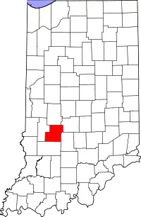 | Морган (Morgan County) | 18109 | Мартинсвилл | 31 декабря 1822 | В честь генерала Дэниэля Моргана | 68 894 | 1046,3 | 25,4 | ![]() |