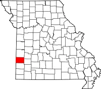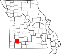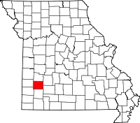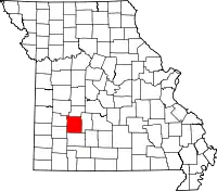 | Округ Сидар | 039 | Стоктон | 1845 | Сформирован из частей округов Дейд и Сент-Клэр | Названием округ обязан изобилию одного из видов можжевельника виргинского (англ. eastern red cedar) | 13 544 | 1233 км² | ![]() |