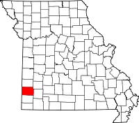 | Округ Бейтс | 013 | Батлер | 1841 | Сформирован из округа Ван Бюрен (ныне Кэсс) | В честь Фредерика Бейтса (1777—1825), второго губернатора Миссури | 16 761 | 2196 км² | ![]() |
