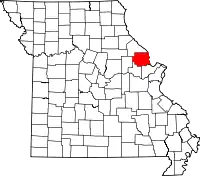 | Округ Линкольн | 113 | Трой | 1818 | Сформирован из части округа Сент-Чарлз | Или в честь округов Линкольн в Кентукки и Северной Каролине (версия Кристофера Кларка[2]), или в честь генерала Бенжамина Линкольна (1733—1810) | 53 311 | 1632 км² | ![]() |