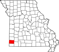 | Округ Бартон | 011 | Ламар | 1855 | Сформирован из части округа Джаспер | В честь Дейвида Бартона (1783–1837), одного из первых сенаторов от Миссури | 12 386 | 1538 км² | ![]() |