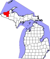 | Онтонагон Ontonagon | Онтонагон | 26131 | 1843 | Из частей округов Чиппева и Макино | По названию реки Онтонагон, которая на французской карте 1670 года называлась «Nantounagon» | 6172 | 3396 | 2 | ![]() |