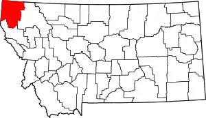 | Лейк | 1923 | Полсон | 30 273 | 4284 | 7,8 | ![]() | Почти 10 % площади округа занимают озёра, в основном оз. Флэтхед. Почти 68 % площади округа занимает индейская резервация Флэтхед (22 % населения округа — индейцы (2010)). |