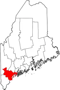 | Йорк York County | 23031 | Альфред | 1652 | 197 131 | 3288 (суша — 2565.9, вода — 722,6) | 76,8 | ![]() |