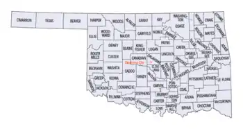 Первоначально, когда штат не входил в состав США и являлся индейской территорией, Оклахома делилась на 7 округов, округа были названы по цифровой форме. Новые округа назывались по буквам алфавита. Современные название округа получили в 1907 году когда Оклахома вошла в состав США, с тех пор было основано ещё три округа.