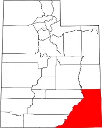 | Сан-Хуан (англ. San Juan County) | 037 | Монтиселло | 1880 | река Сан-Хуан | округа Кейн, Айрон и Пайют | 14 746 | 20546,8 | 4,9 | ![]() |