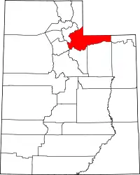 | Уосатч (англ. Wasatch County) | 051 | Хебер-Сити | 1862 | индейское слово, означающее «горный проход» | округа Юта и Санпит | 23 530 | 3123,5 | 51,8 | ![]() |