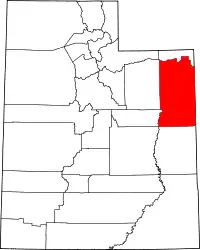 | Юинта (англ. Uintah County) | 047 | Вернал | 1880 | индейское племя юинта народа ютов | округ Уосатч | 32 588 | 11658,6 | 18,8 | ![]() |