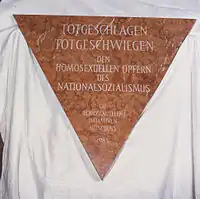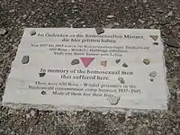В бывшем концлагере Дахау мемориальная доска «Розовый треугольник», увековечивающая память гомосексуалов-жертв национал-социализма, была установлена в 1994 году. Надпись на памятнике: