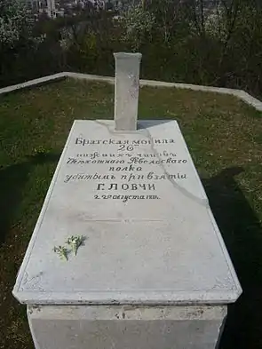 Памятник русским воинам, погибшим летом 1877 года в боевых действиях в деревне Аязлар (Светлен) | Паметник на руски войници, загинали през лятото на 1877 г. в боевете при село Аязлар (Светлен) | Попово | Расположенный на северной окраине города