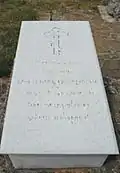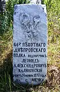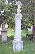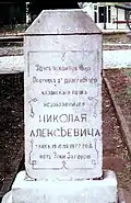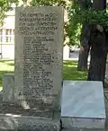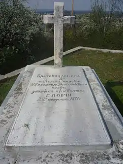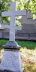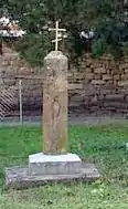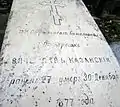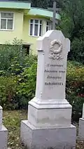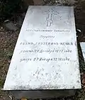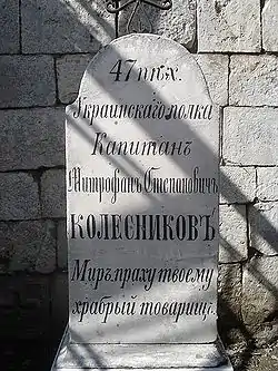 Надгробие капитану 47-го Украинского полка Митрофану Колесникову, ранен в обе ноги в бою за Трыстеник 14 ноября 1877 г. и умер в плену в городе Шумен | Надгробен паметник на капитан Митрофан Колесников от 47-ми Украински полк, ранен и в двата крака в боя при Тръстеник на 14 ноември 1877 г. и умрял в плен в град Шумен | Шумен | Находится во дворе церкви «Святого Вознесения Господне»