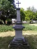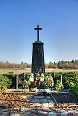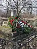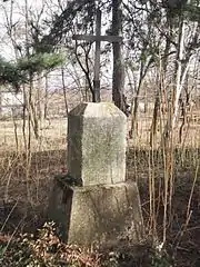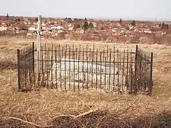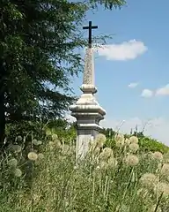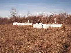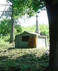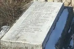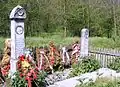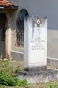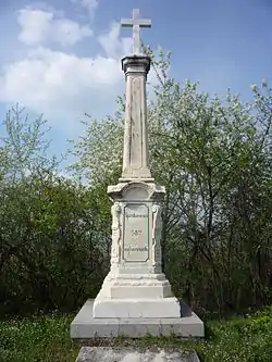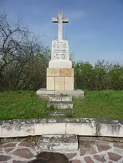 Братская могила младших вахмистров Ефима Падалкина, Клима Мандрыка, унтер-офицера Ивана Червичного, ефрейторов Виктора Кулчицкого, Ефима Бондара, рядовых Мартына Ермолюка, Кирилла Кошелева, Василия Забродина и Созона Козленко из 8-го Лубенского гусарского полка[39], убитых 28 ноября 1877 г. при д. Посабина | Братска могила на младши вахмистри Ефим Падалкин и Клим Мандрик, унтер-офицер Иван Червичний, ефрейторы Виктор Кулчицкий и Ефим Бондар, редови Мартин Ермолюк, Кирил Кошелев, Василий Забродин и Созон Козленко от 8-ми Лубенски хусарски полк убити на 28 ноември 1877 г. при с. Посабина | Посабина | Находится к западу деревни