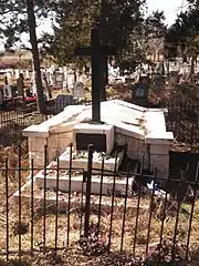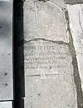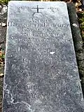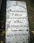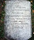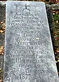 Надгробие майора Орлинского Ивана Павловича из 4-го гусарского Мариупольского полка, умершего в 1879 году | Надгробен паметник на майор Иван Павлович Орлински от 4-ти хусарски Мариуполски полк, починал през 1879 г. | Благоевград | Находится во дворе церкви «Дева Мария»