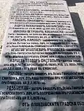Сей величественный соборный храм сооружен и украшен по патриотическому решению Первого Народного собрания в Тырнове 13 апреля 1879 года на добровольные пожертвования всего болгарского народа для увековечения его братской любви и глубокой признательности великому русскому народу за освобождение Болгарии в 1878 году.