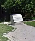 Мемориальная доска на месте, где первый русский солдат, который вошёл в город, был убит башибозуками | Паметна плоча на мястото където първият руски войник е влязъл в града и е бил убит от башибозуците | Хасково | Находится на территории городе |