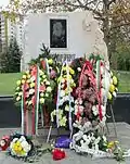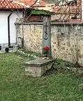 Памятник русскому писателю Всеволоду Гаршину рядовой 138-го Болховского полка, ранен в сражении возле деревни Аязлар (Светлен) | Паметник на руския писател Всеволод Гаршин редник от 138-ми Болховски полк ранен в сражението край село Аязлар (Светлен) | Светлен | Расположенный на северной окраине деревни во дворе церкви «Святого царя Бориса Михаила»
